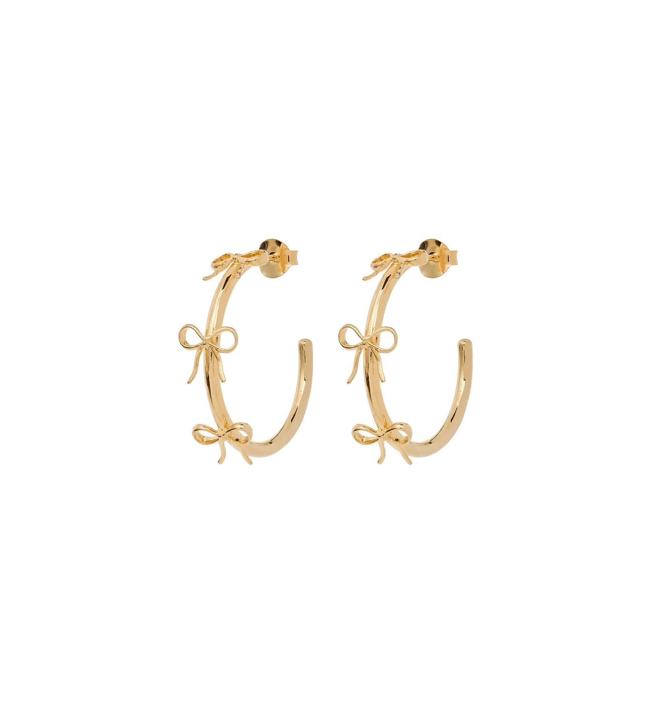The Big Bow Hoop Earrings have a stunning design. The earring features three bows, giving it that little something extra. Pair it with other items from the collection for the perfect match.