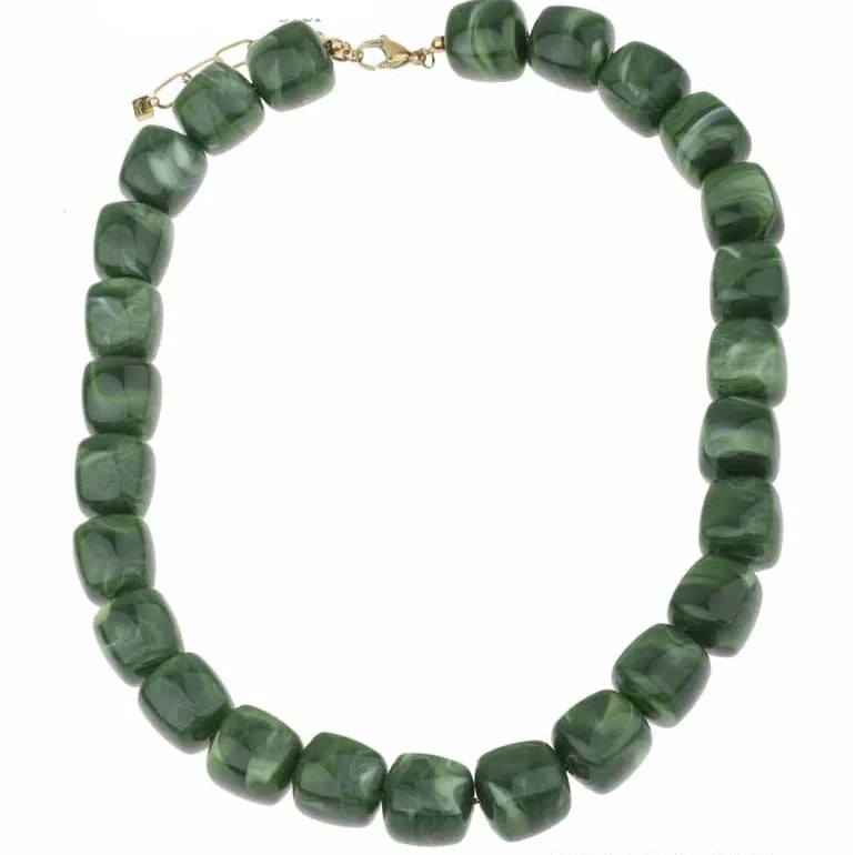 Deze groene ketting met resin kralen straalt tijdloze elegantie uit en is ideaal voor elke gelegenheid.